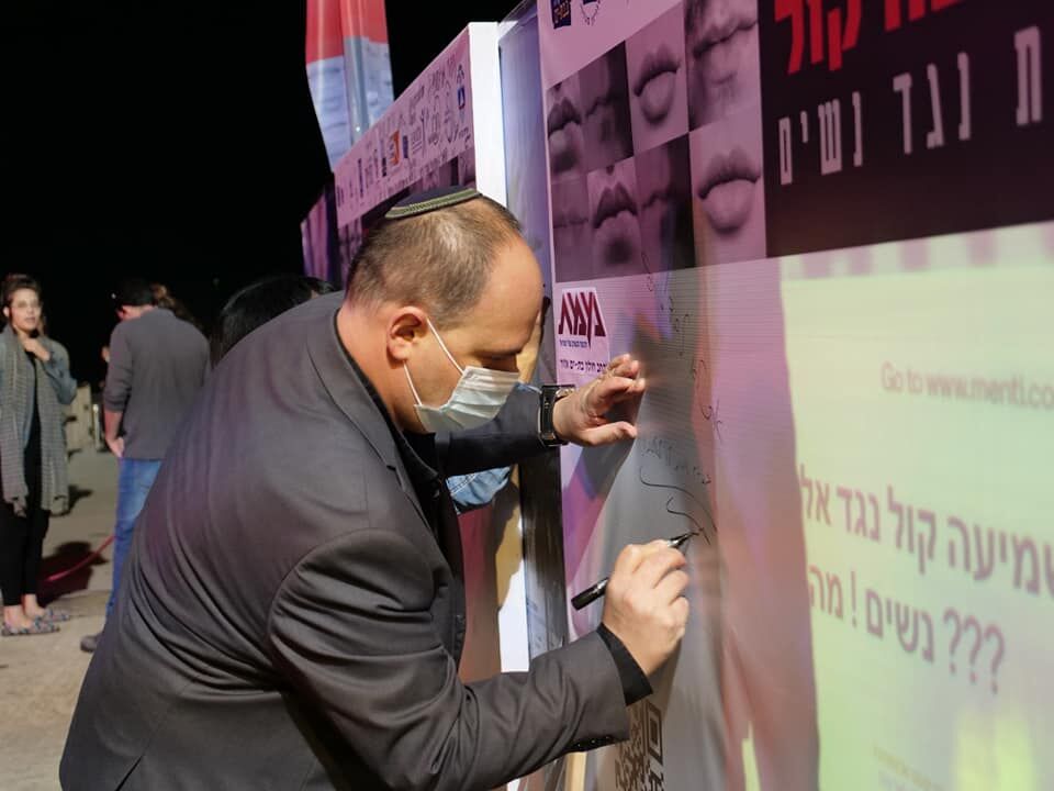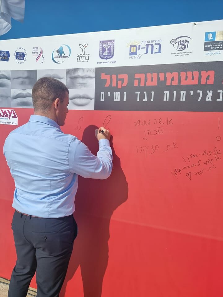 בסיום הצעדה הגיעו התושבים לחתום על קיר המחאה שהוקם בטיילת בת ים, כדי להבהיר כי בת ים משמיעה את קולה במאבק נגד אלימות כלפי נשים.
