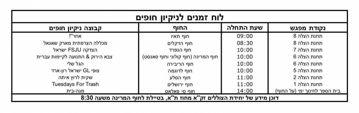 רשימת החופים ושעות המפגש מצורפות