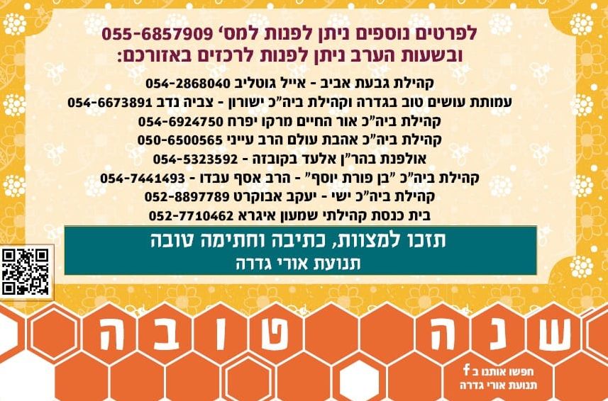 תנועת אורי גדרה בשיתוף מחלקת הרווחה של המועצה מקיימת בימים אלו את מבצע ההתרמה למשפחות נזקקות לשנה החדשה. התנועה פונה אל התושבים בסיוע בתרומות לרכישת סלי מזון בעלות של 90 ₪ , ניתן לתרום כל סכום. חלוקת הסלים תתקיים במהלך השבוע לקראת החג.