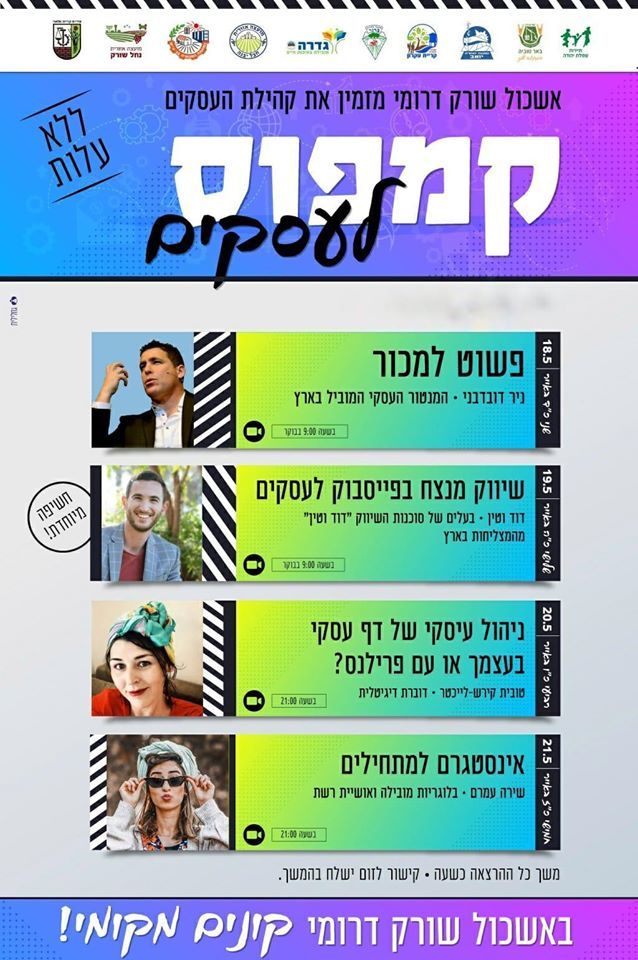 קמפוס העסקים לתושבי גדרה וקריית עקרון נמשך עם סדרת ההרצאות בזום לבעלי עסקים ותושבים! מחר 18.5 תתקיים הרצאתו של ניר דובדבני המנטור העסקי המוביל בישראל; לו"ז ההרצאות המלא מצ"ב בכתבה