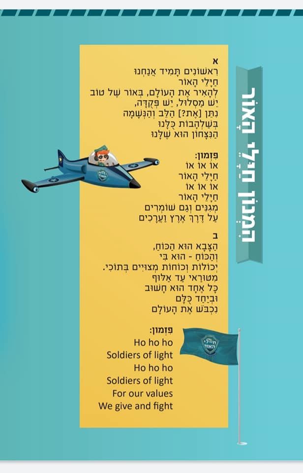 הכירו את צבא חיילי האור של בתי ספר שלהבות חב"ד בגדרה. השנה יצא בית הספר בתוכנית חינוכית חדשה לתלמידים המתקיימת במסגרת "צבאית", במסגרתה התלמידים הופכים להיות חיילים ויכולים לעלות בדרגות . העלייה בדרגה מתבצעת על פי צבירת נקודות וביצוע משימות, לאורך שנת הלימודים על פי מסלולים של התנהגות טובה, מניעת אלימות התנדבות ועוד. כמו כן כמו בכל צבא מקבלים החיילים ציוד צבאי הכולל, תעודת חוגר, תיק, וכומתה וכמובן נכתב המנון מיוחד.