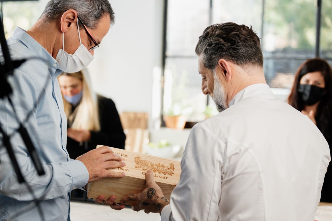 כמובן, כהן לא בא בידיים ריקות והעניק לגרניט, הידוע כמבין גדול ביין, בקבוק יין ישראלי משובח ועוגה - איך לא - בצורת כוכב מישלן.