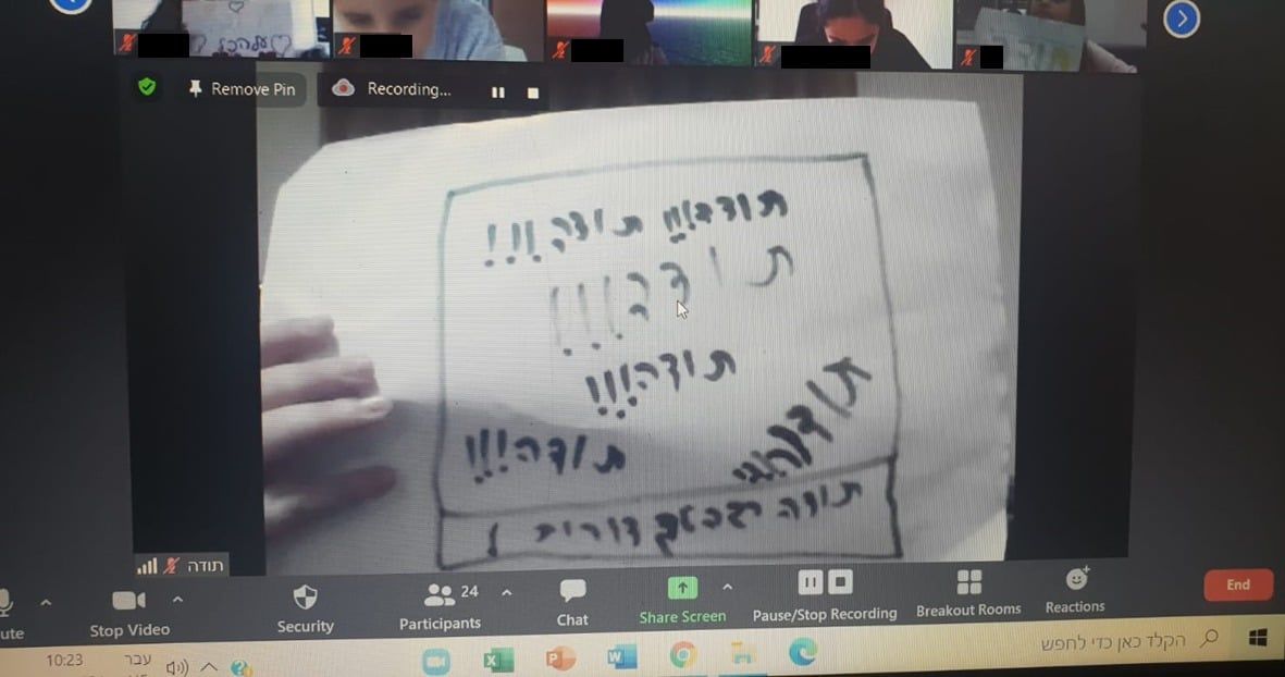 פשוט להגיד תודה! תלמידי ביה"ס הרצוג במזכרת בתיה הפתיעו את מורתם וחברת מועצת גדרה, דורית בן בוחר, בזמן שיעור בזום כאשר פשוט אמרו לה "תודה"