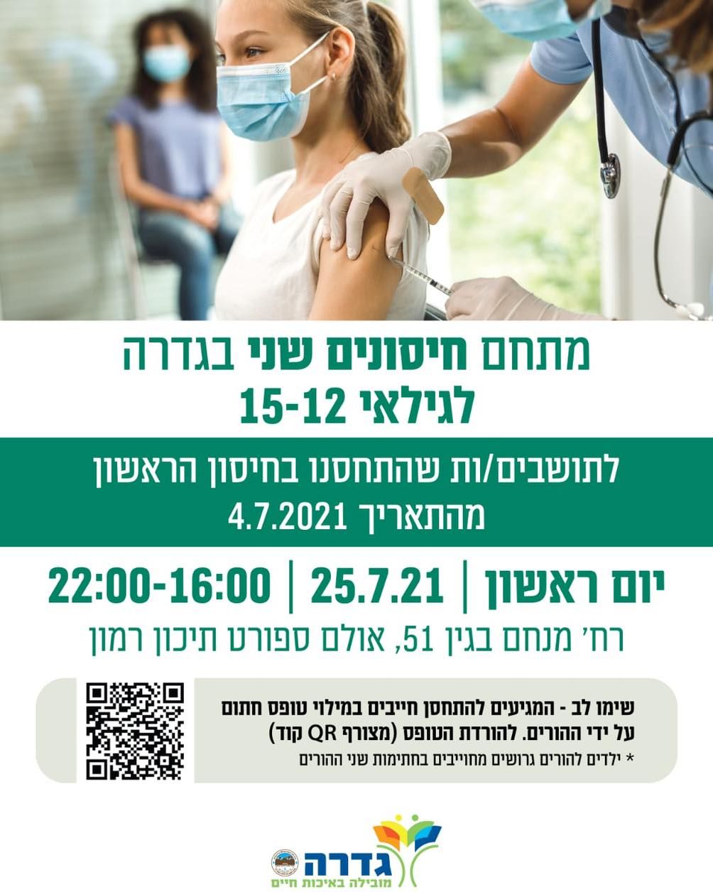 בשבוע הבא יום ראשון 25.7 עתידה המועצה לפתוח באולם הספורט רמון את מתחם החיסונים השני לבני הנוער, שהתחסנו חיסון ראשון ב4.7.21.