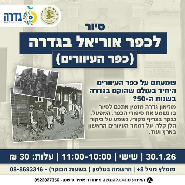 מוזיאון גדרה מקיים סיור מיוחד בכפר אוריאל (כפר העיוורים) ביום שישי ה-30.1.26