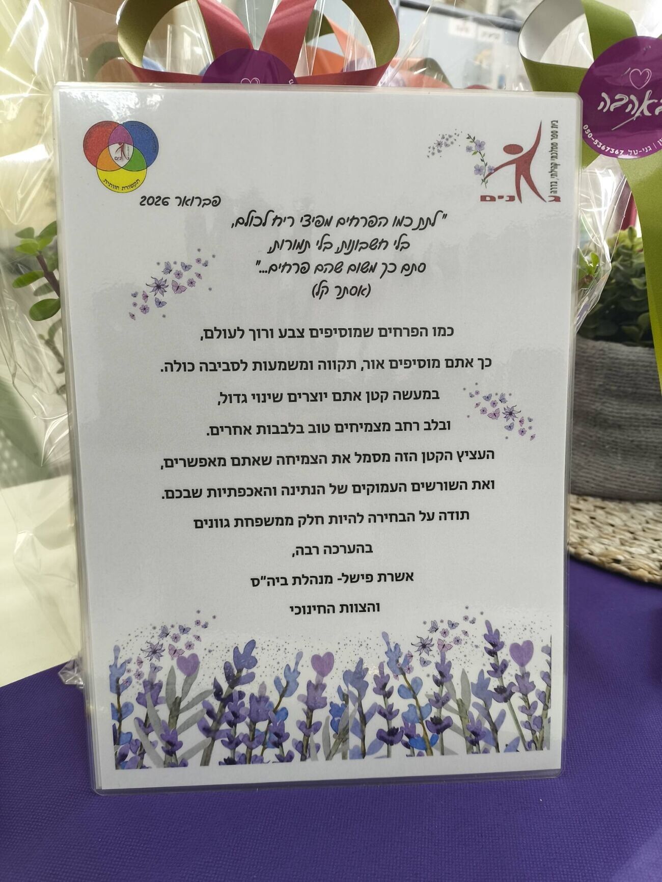במהלך המפגש צוינה הערכה רבה לפרח בן־גד, מרכזת העמותה בגדרה, על שותפות מעצימה, מחויבות עמוקה ויצירת חיבור משמעותי בין הקהילה לבין המוסד החינוכי.