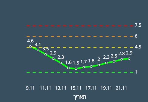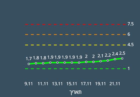בשבוע האחרון נרשמה עלייה בציון הרמזור של גדרה שמתקרב ל3 - למרות העלייה גדרה עדיין ירוקה