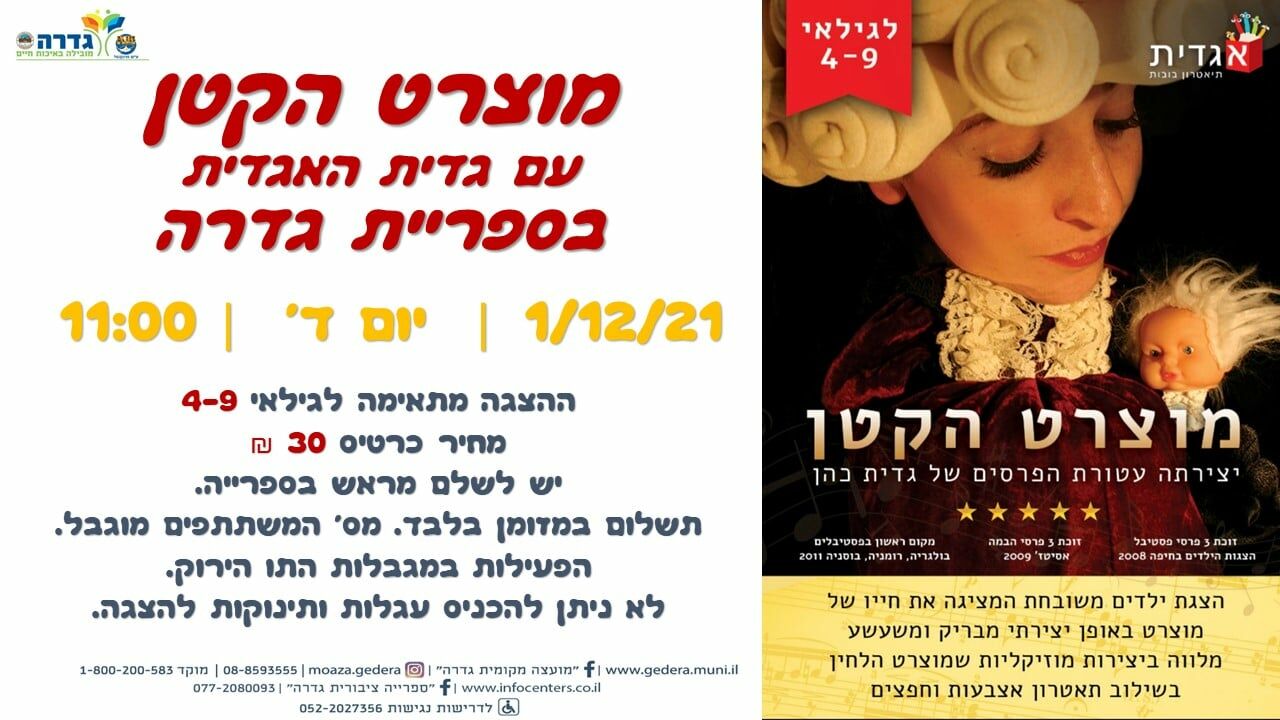תתקיים הצגת ילדים:" מוצרט הקטן" בעלות של 30 ₪ בספרייה הציבורית.