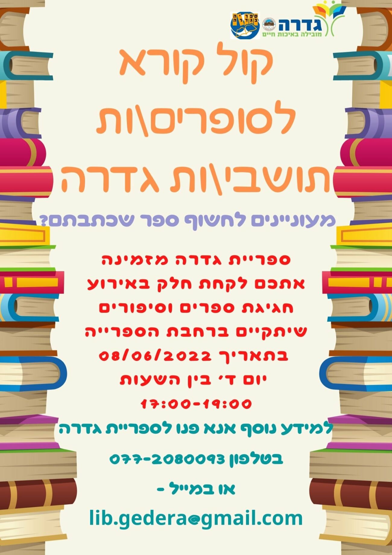 יוצרות ויוצרים תושבות ותושבי גדרה אם הוצאתם ספר בספריית גדרה מחפשים אתכם