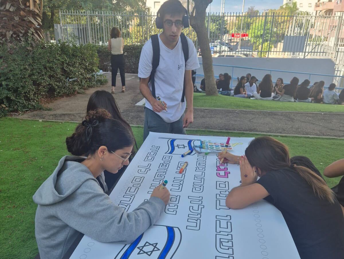 מרגש בגימנסיה ברנקו וייס בחולון: תלמידים החליפו את שלט החטופים בשלט המבשר על חזרתו של בר קופרשטיין מהשבי