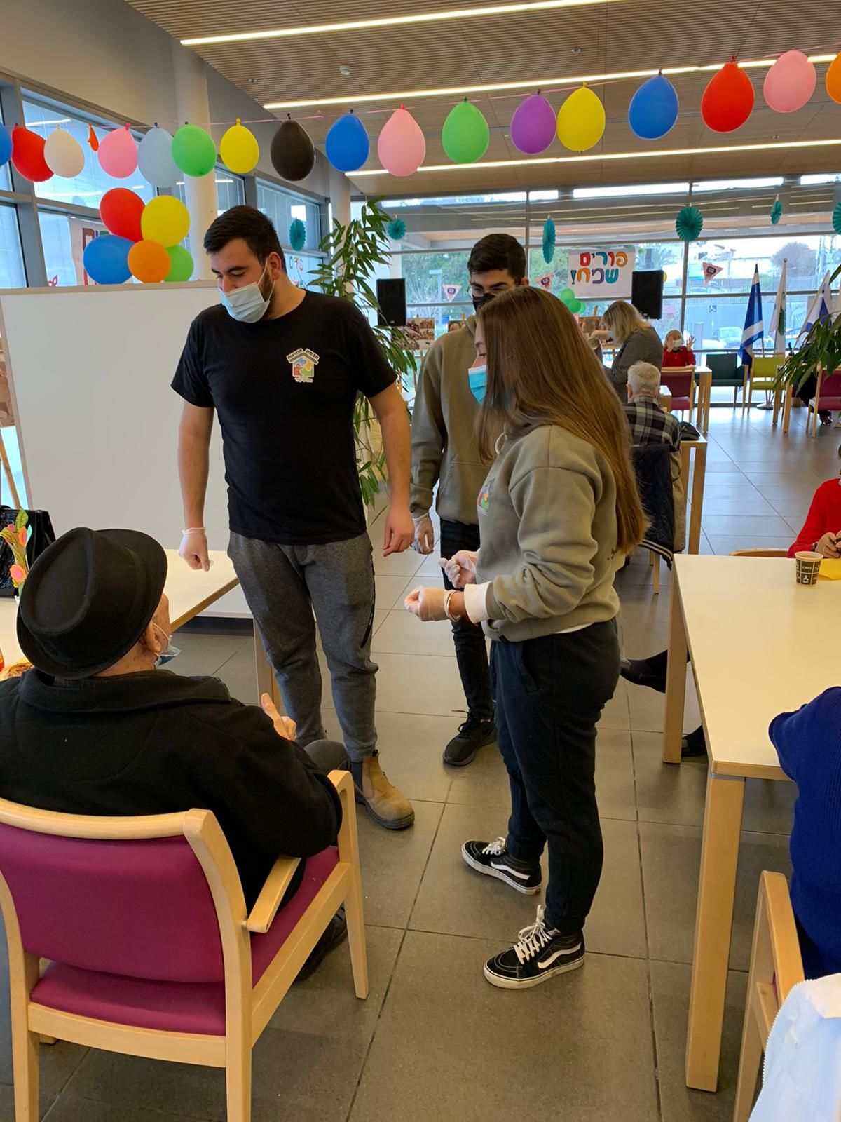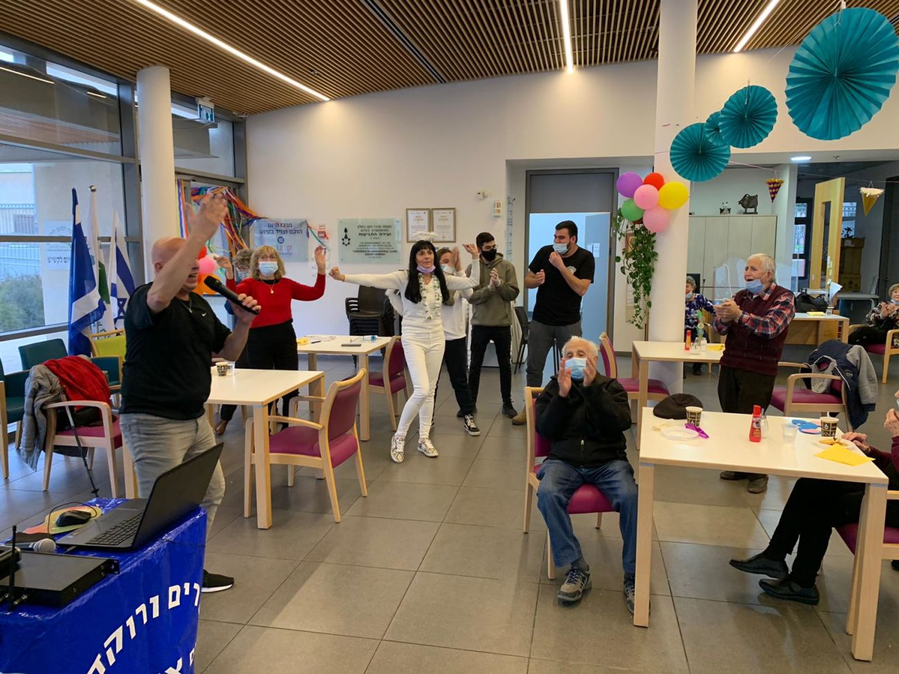 תלמידי תיכון קציר בחולון ערכו מסיבת פורים חגיגית לחברי מועדון קפה אירופה לניצולי השואה יחד עם מופע שירה בציבור