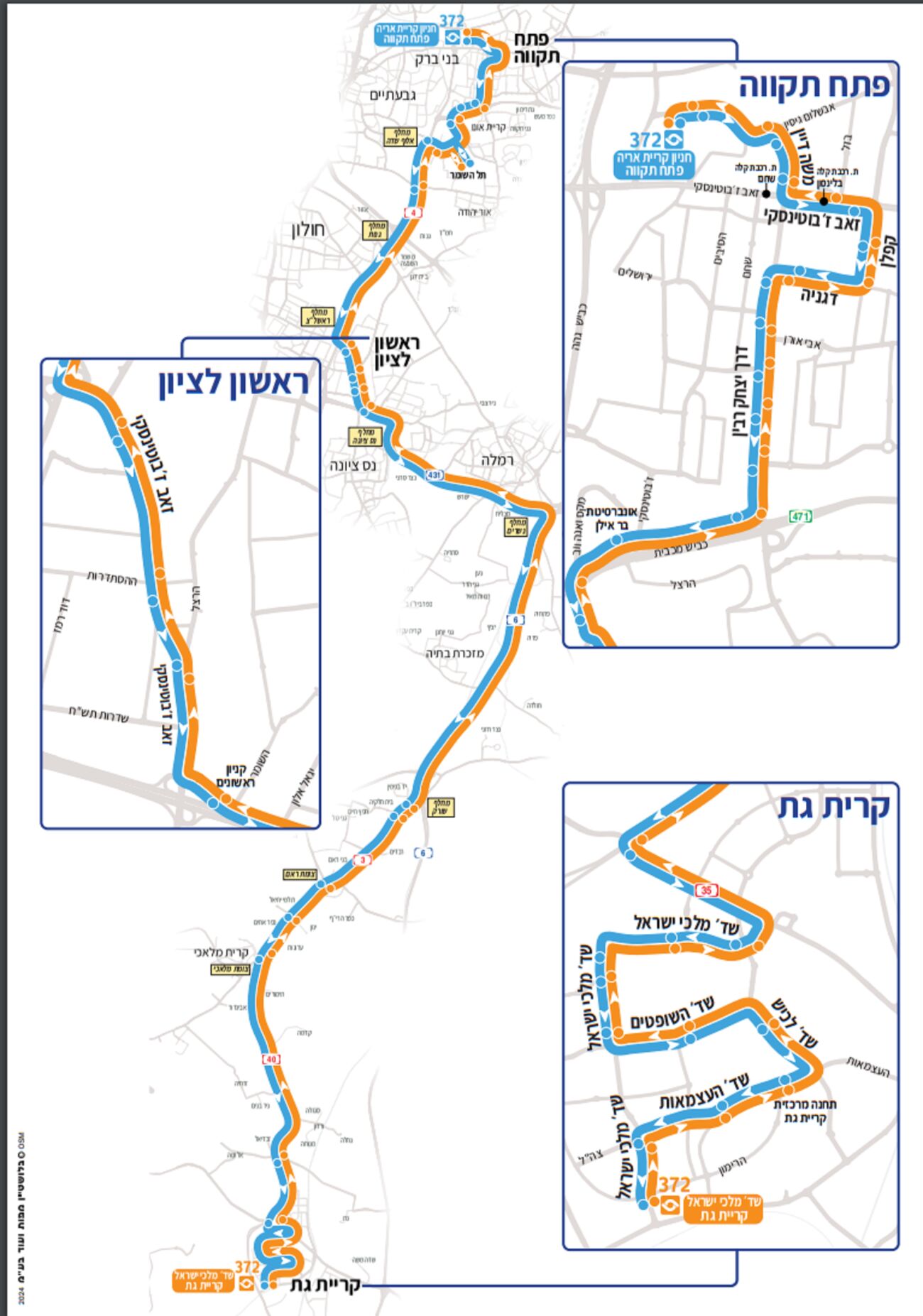 קו 372 - ראשון לציון- קרית גת - פתח תקווה: