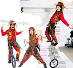 ג'אגלינג בחרבות בעיניים מכוסות על חד אופן בגובה 3 מטרים. תאטרון רחוב קלאסי בטוויסט מודרני.