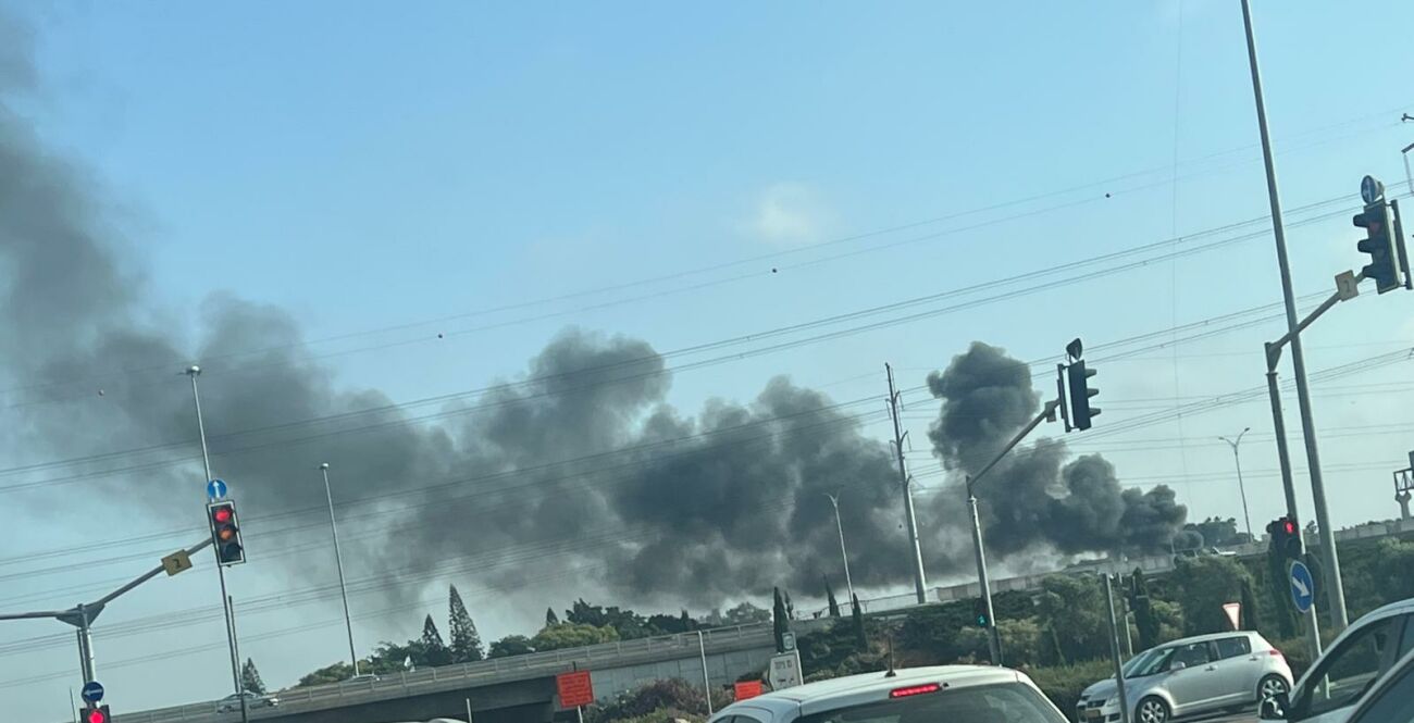 שריפה מתפתחת ליד צומת גן הורדים בראשון לציון
