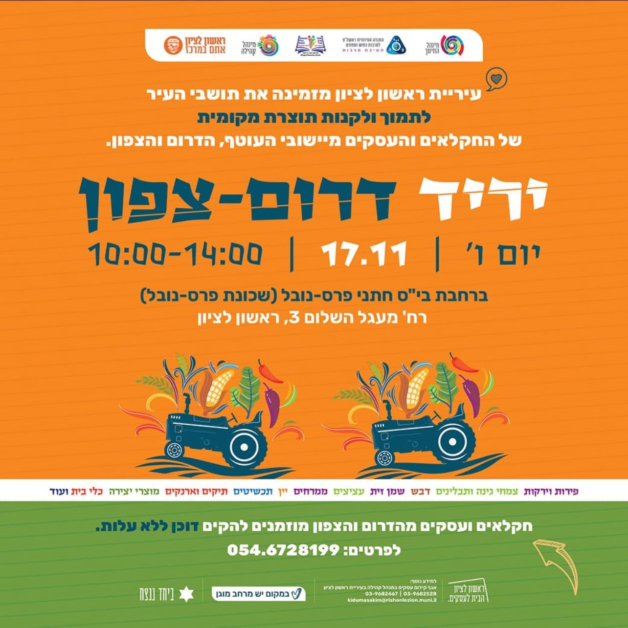 ביום שישי 17.11 עיריית ראשון לציון תקיים יריד חקלאים מיישובי העוטף, הדרום והצפון בבית ספר פרס נובל
