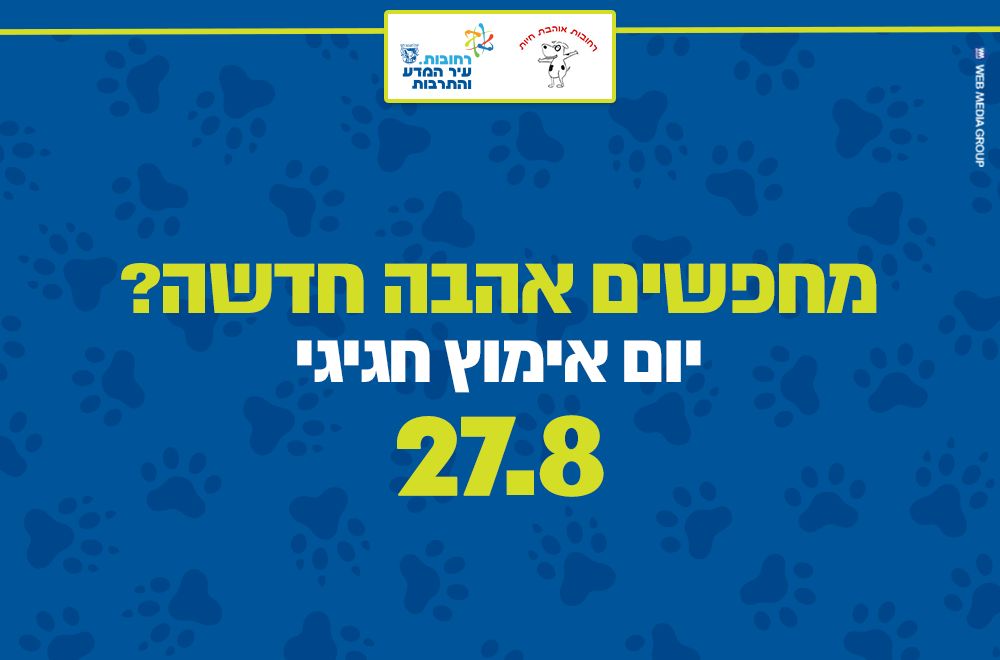 יום האימוץ יתקיים ביום שלישי 27.8.19 בין השעות 17:00-19:00 בגן המייסדים