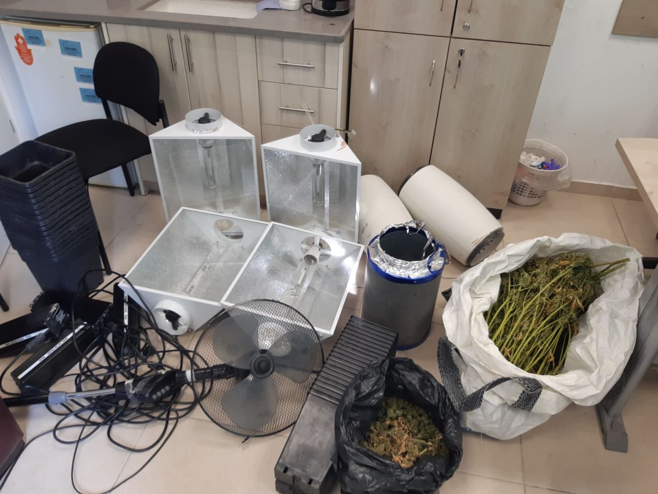 בדירה נתפסו כ-40 שתילים של קנאביס במשקל כולל של כ-3 ק"ג, טלפונים סלולריים, כסף מזומן וכן ציוד רב המשמש לגידול וייצור סמים.