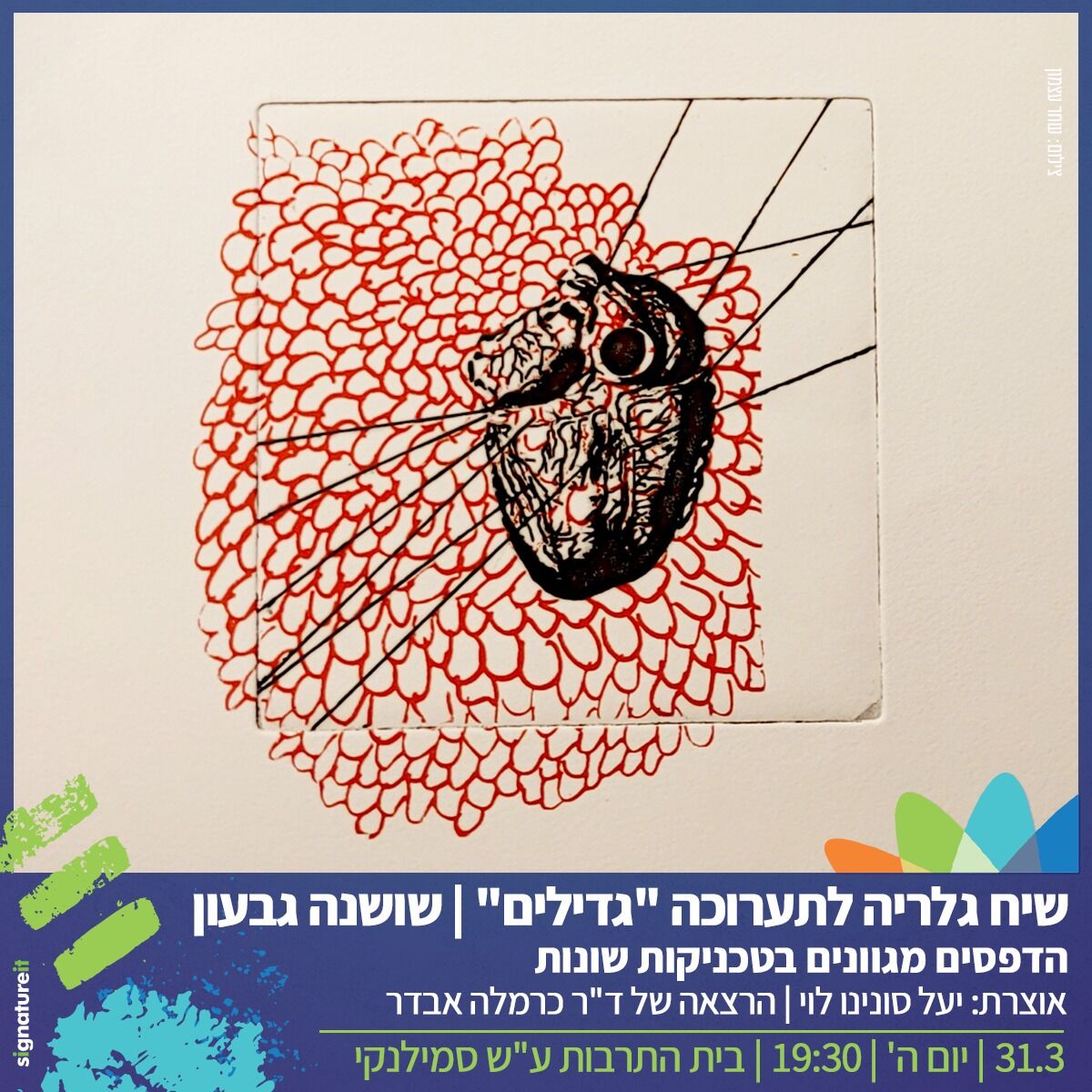 31.3 | יום ה' | 19:30 הגלריה להדפס אמנותי- בית התרבות ע"ש סמילנקי, רח' גולדין 2