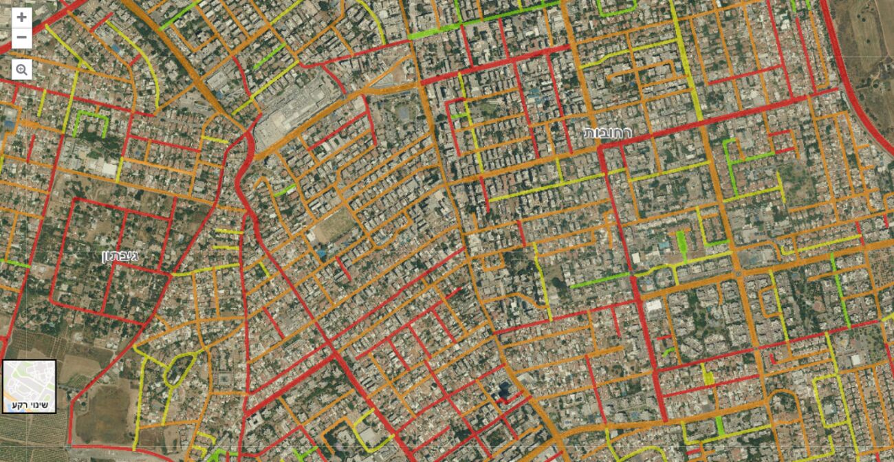 המפה נותנת מיפוי של הרחובות בישראל שמחולקים ל4 צבעים