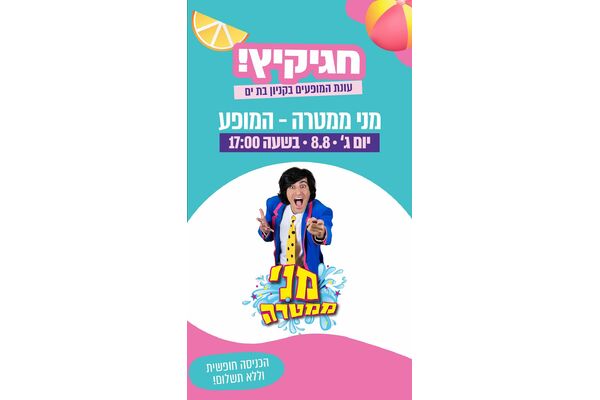 מני ממטרה יגיע מחר 8.8 להופעה, ללא עלות בקניון בת ים!