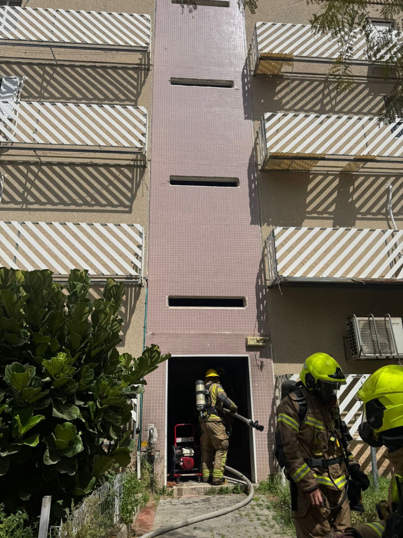 שריפה במקלט בבניין מגורים ביבנה: שלושה דיירים פונו במצב קל משאיפת עשן