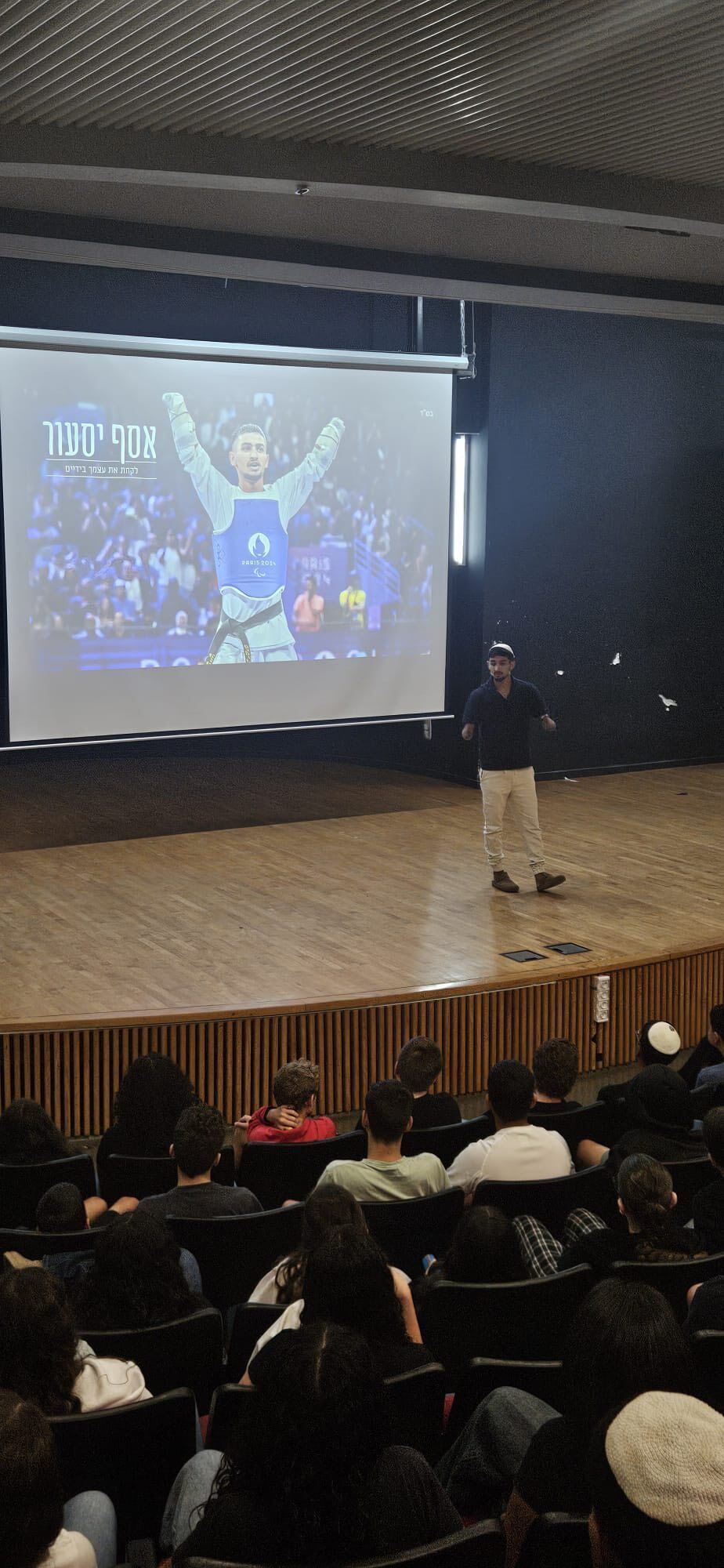 האלוף האולימפי אסף יסעור הרצה בפני תלמידי שכבת ח' בקריית החינוך גינסבורג ביבנה והעניק להם השראה על כוח רצון והתגברות על מכשולים