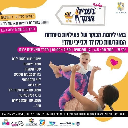 ההשתתפות מיועדת לתושבות יבנה בלבד, ומספר המקומות מוגבל ל-26 אמהות ותינוקות.