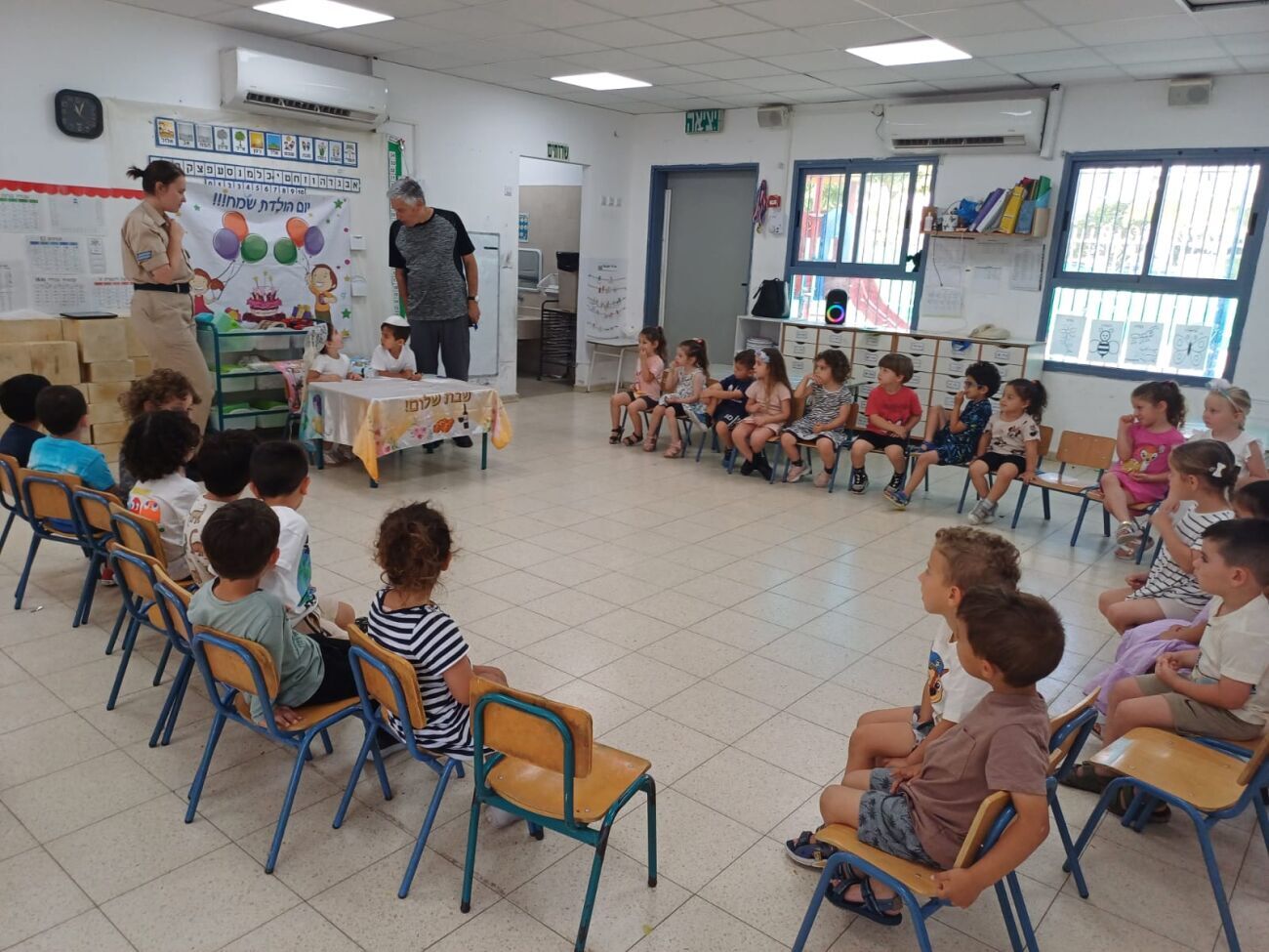 יוזמה מרגשת ביבנה: יעקב פרי והחיילת דריה, מטעם עמותת 'חביבי - מחבקים חיילים בודדים', וקבלו ארוחות מילדי גן 'צדף' עבור חיילים