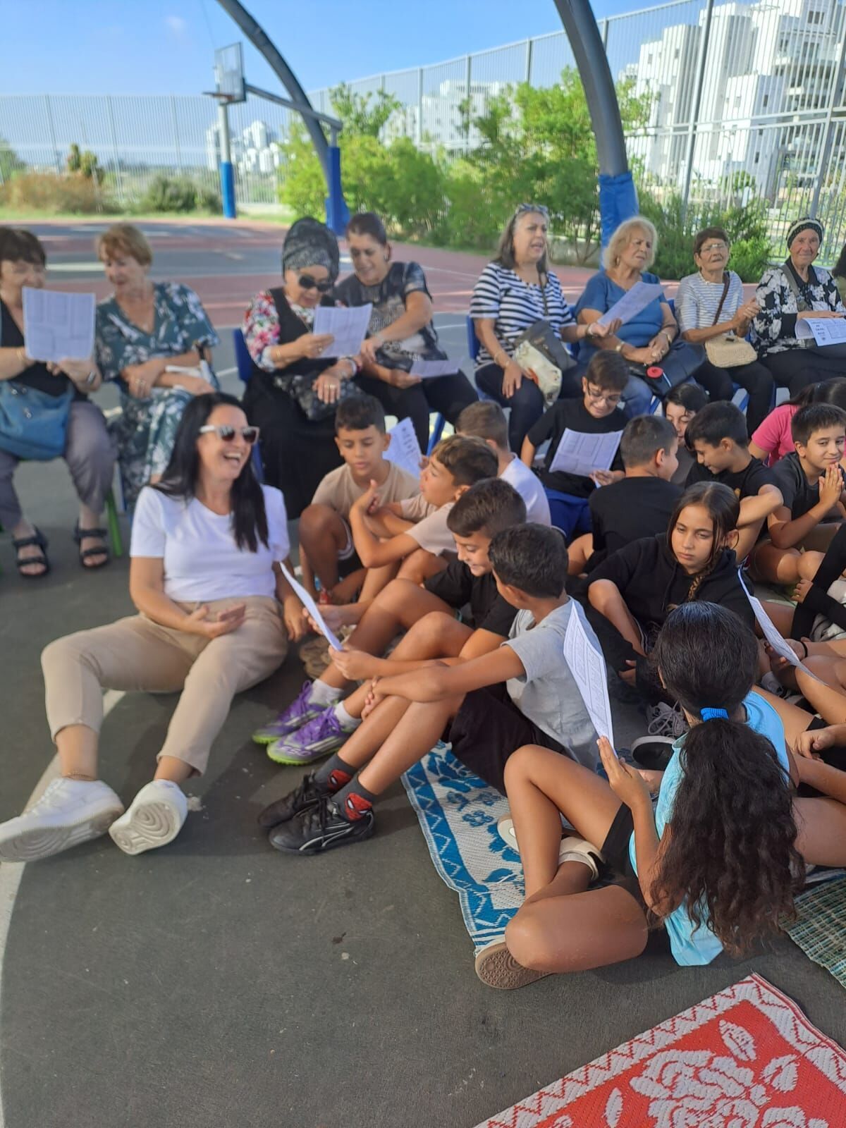 מפגש מרגש ביבנה: תלמידי כיתות ה' מבית חינוך מרחבים וחברי מועדון הקשישים "לגעת בלב" נפגשו לשירה בציבור לכבוד חגי תשרי