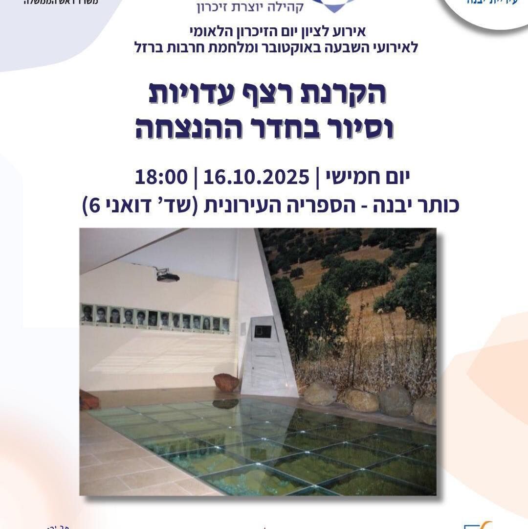 לזכרם: עיריית יבנה מציינת את אירועי השבעה באוקטובר ומלחמת חרבות ברזל בסדרת טקסים, מפגשי עדות ומעגלי שיח בין התאריכים 7-23.10