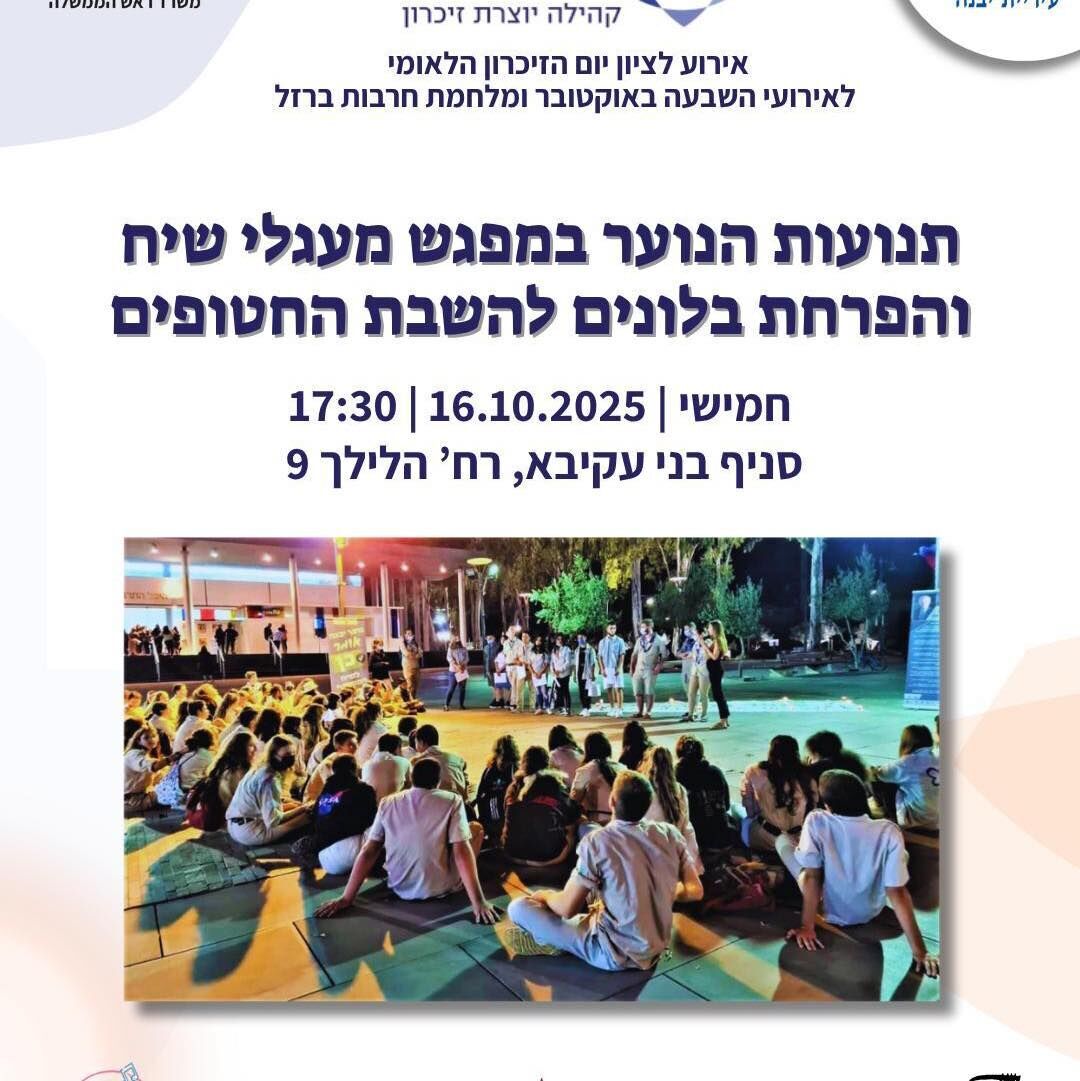 ביום שלישי, 15 באוקטובר, בשעה 20:00, יתקיים טקס באתר ההנצחה לזכרם של בנות ובני יבנה שנפלו באסון ה-7 באוקטובר ובמלחמת "חרבות ברזל".