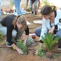 שותפים רבים נרתמו להקמת הגינה ביניהם אורי שמואלי על תכנון הגינה, צוות אגף שפ"ע בעיריית יבנה, דודי בריגה הגנן וצוותו המסור, המורה עופרה טסמה והמורה אברהם זיו על עבודתם המסורה עם קבוצות התלמידים אשר עמלו, שתלו וטיפחו את הגינה.