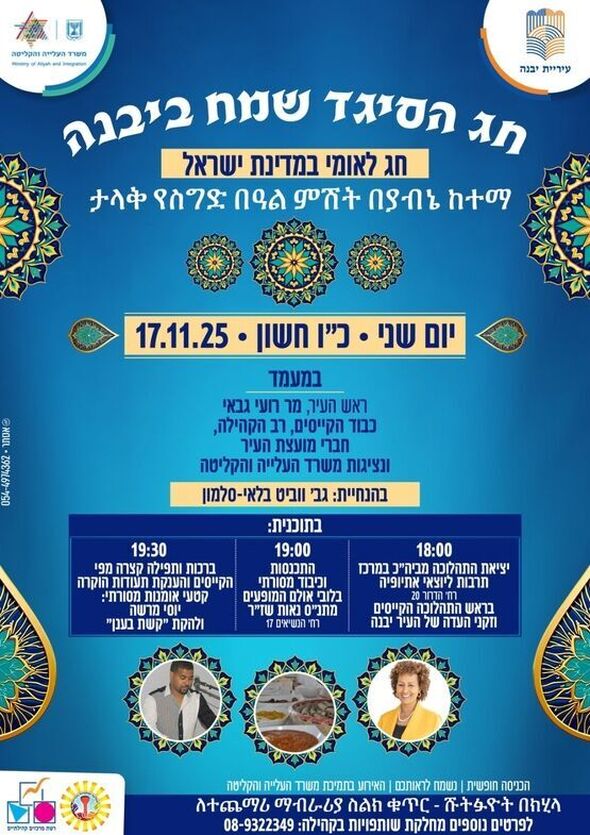 עיריית יבנה תציין את חג הסיגד, חג לאומי במדינת ישראל, באירוע חגיגי שיתקיים ביום שני, כ"ו בחשוון, 17 בנובמבר 2025.