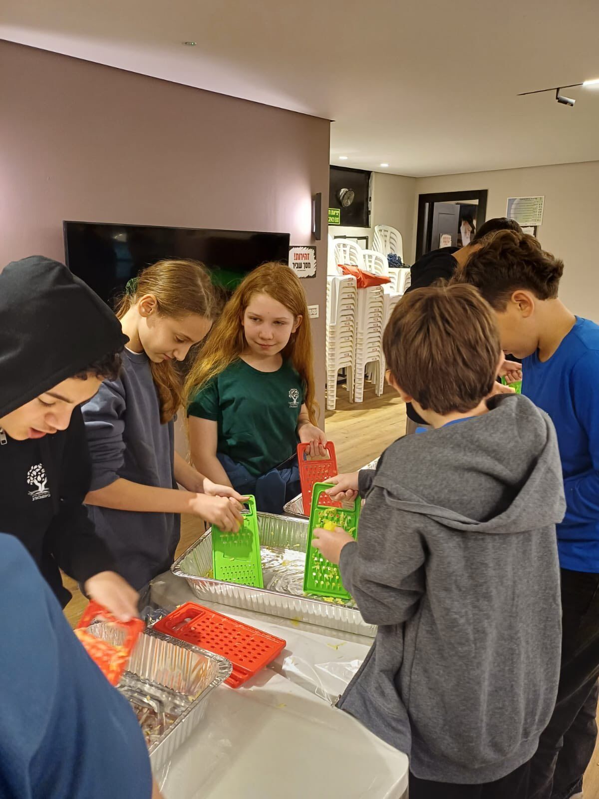 תלמידי שכבת ז' מקריית החינוך ע"ש גינסבורג ביבנה התנדבו במרכז חב"ד והכינו לביבות חמות לקשישי העיר