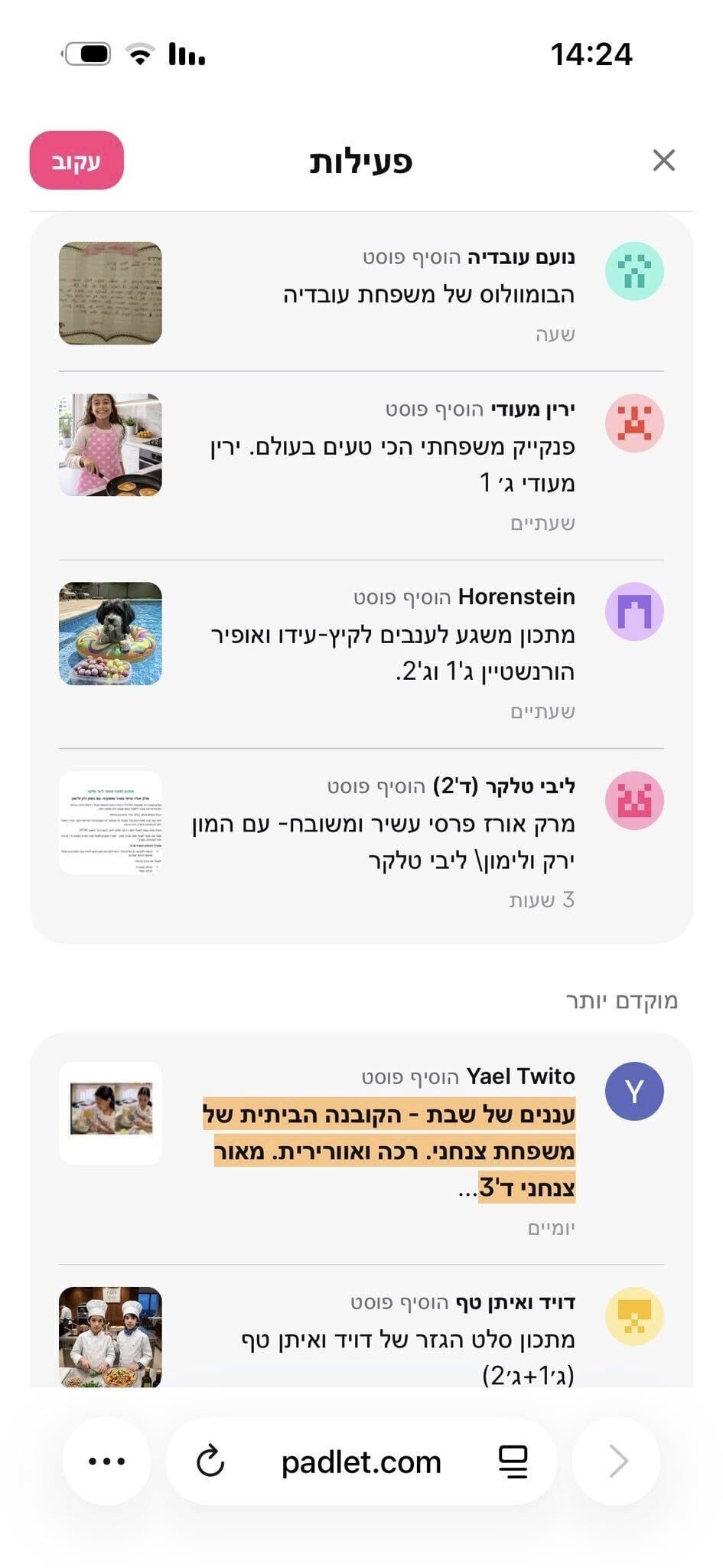 הפרויקט נמצא עדיין בעיצומו, וצוות בית הספר מזמין תלמידים נוספים משכבות ג'-ד' לקחת חלק, לשתף מתכון אהוב ולהיות חלק מקהילה לומדת, מגובשת ויוצרת. להעלאת מתכונים נוספים, מוזמנים התלמידים להיכנס ללוח הפרויקט המקוון בקישור: https://padlet.com/liorturkaspa/padlet-pg0gfzrqwifdc7m1.