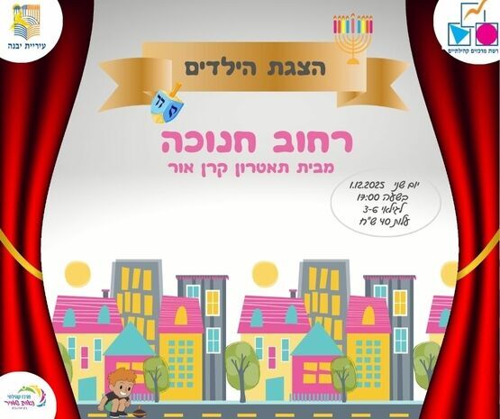 היום (1.12.25) ביבנה: במרכז הקהילתי נאות שמיר הצגת הילדים "רחוב חנוכה" ובמרכז הקהילתי ליפקין-שחק פעילות מוזיקלית "שעה של קסם, עם אורן והגיטרה"