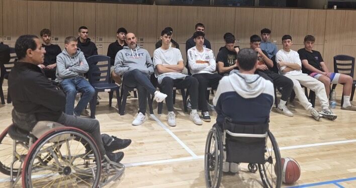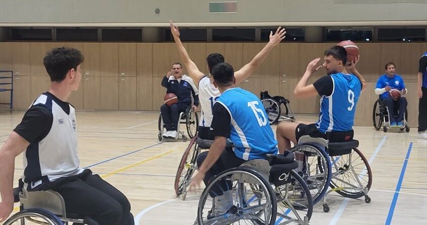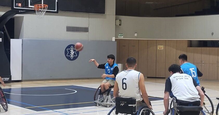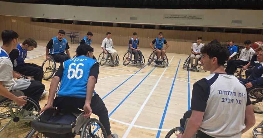 קבוצת הנוער של אליצור יבנה ביקרה בבית הלוחם בתל אביב: השחקנים התנסו בכדורסל כיסאות גלגלים וצפו באימוני שחיינים פאראלימפיים