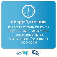 - שמירה על עקביות: על מנת לשמור על שעון ביולוגי מכוון, יש להשתדל לקום בבוקר בשעה קבועה, גם לאחר לילות שבהם נשמעו אזעקות וגם במהלך סופי השבוע.