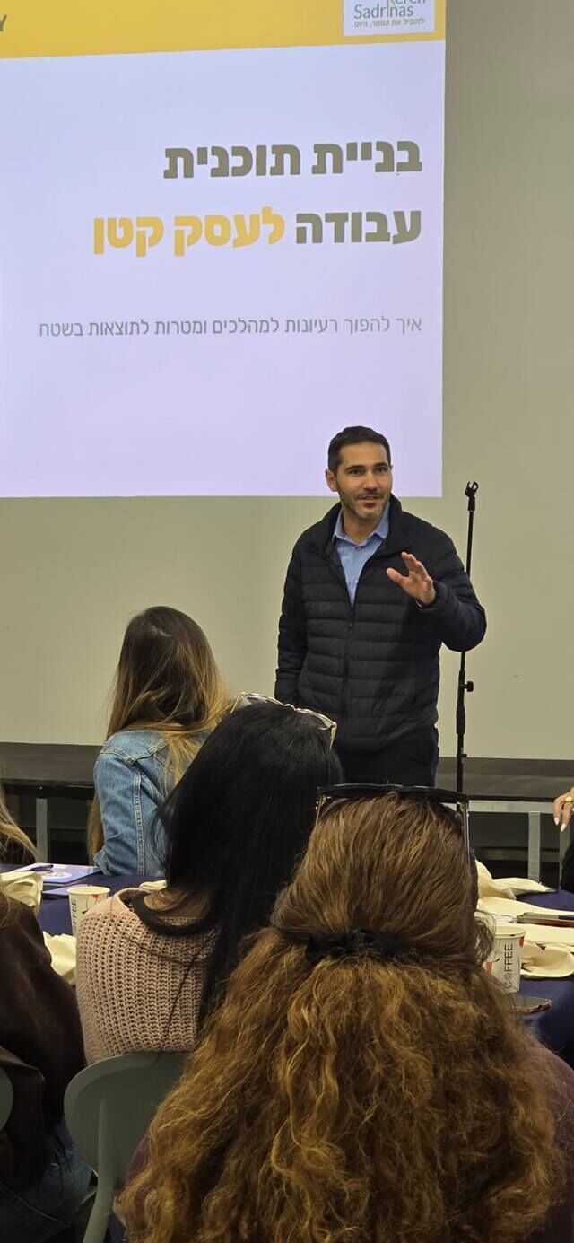 המפגש הראשון הועבר על ידי המנחה קרן סדרינס מטעם מעוף, ועסק בבניית תוכנית עבודה לעסק קטן, מודל SMART, ניהול משימות ואתגרים יומיומיים. זהו המפגש הראשון מתוך שמונה מפגשים מתוכננים, כאשר בהמשך הסדרה צפויים תכנים נוספים כגון בינה מלאכותית לעסקים, מיתוג אישי, תמחור, ניהול זמן ועוד.