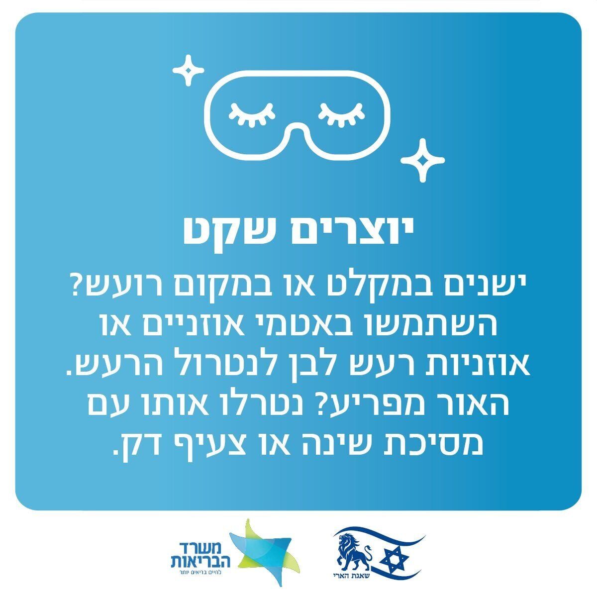 על פי הנחיות המשרד, מומלץ ליישם מספר צעדים פשוטים כדי להתמודד עם קשיי ההירדמות והעייפות המצטברת הנגרמת ממצב הלחימה: