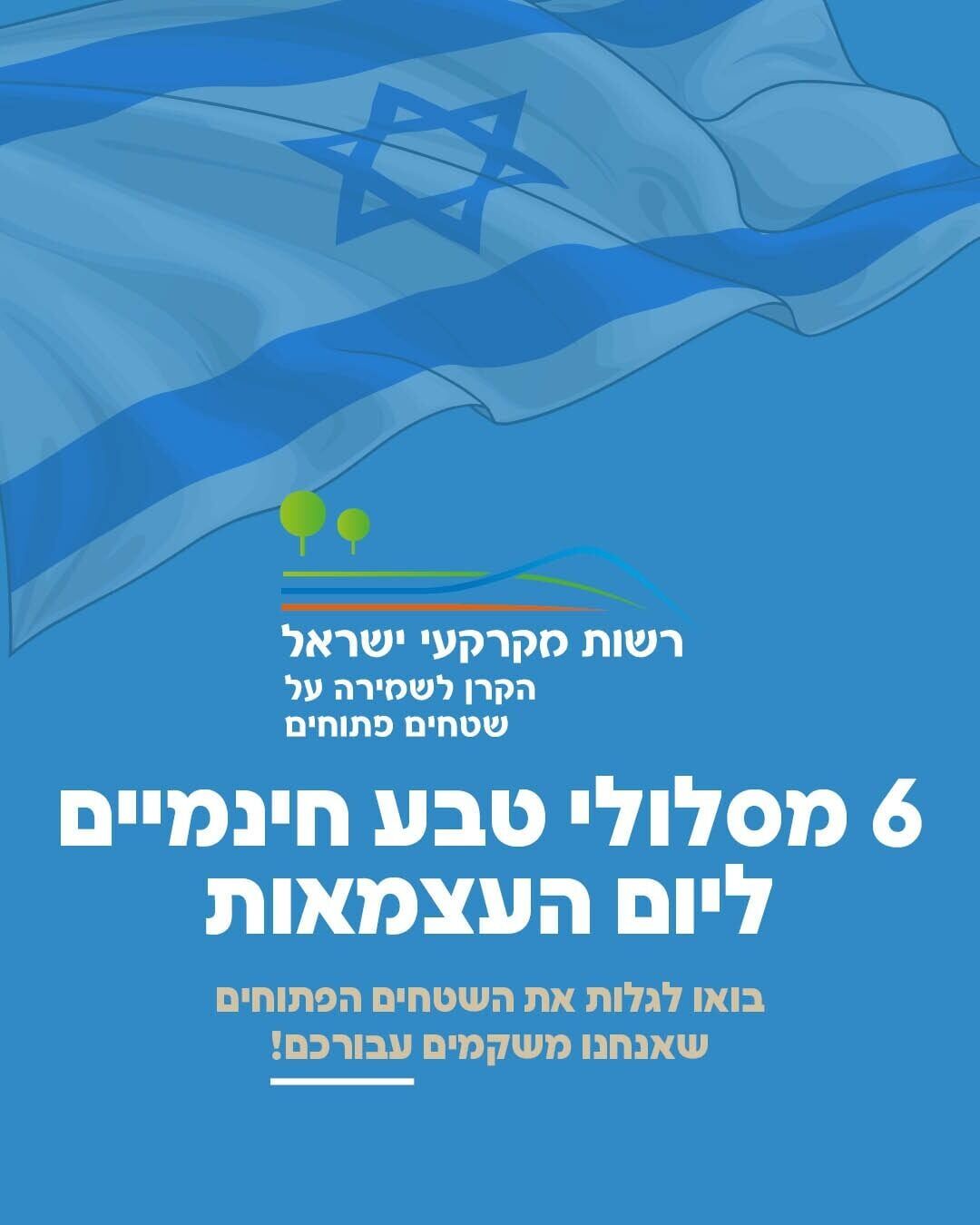 לקראת חגיגות יום העצמאות, רשות מקרקעי ישראל והקרן לשמירה על השטחים הפתוחים מציגות שישה אתרי טבע חינמיים ופחות מוכרים ברחבי הארץ, המציעים חוויית בילוי נעימה בחיק הטבע לכל המשפחה.