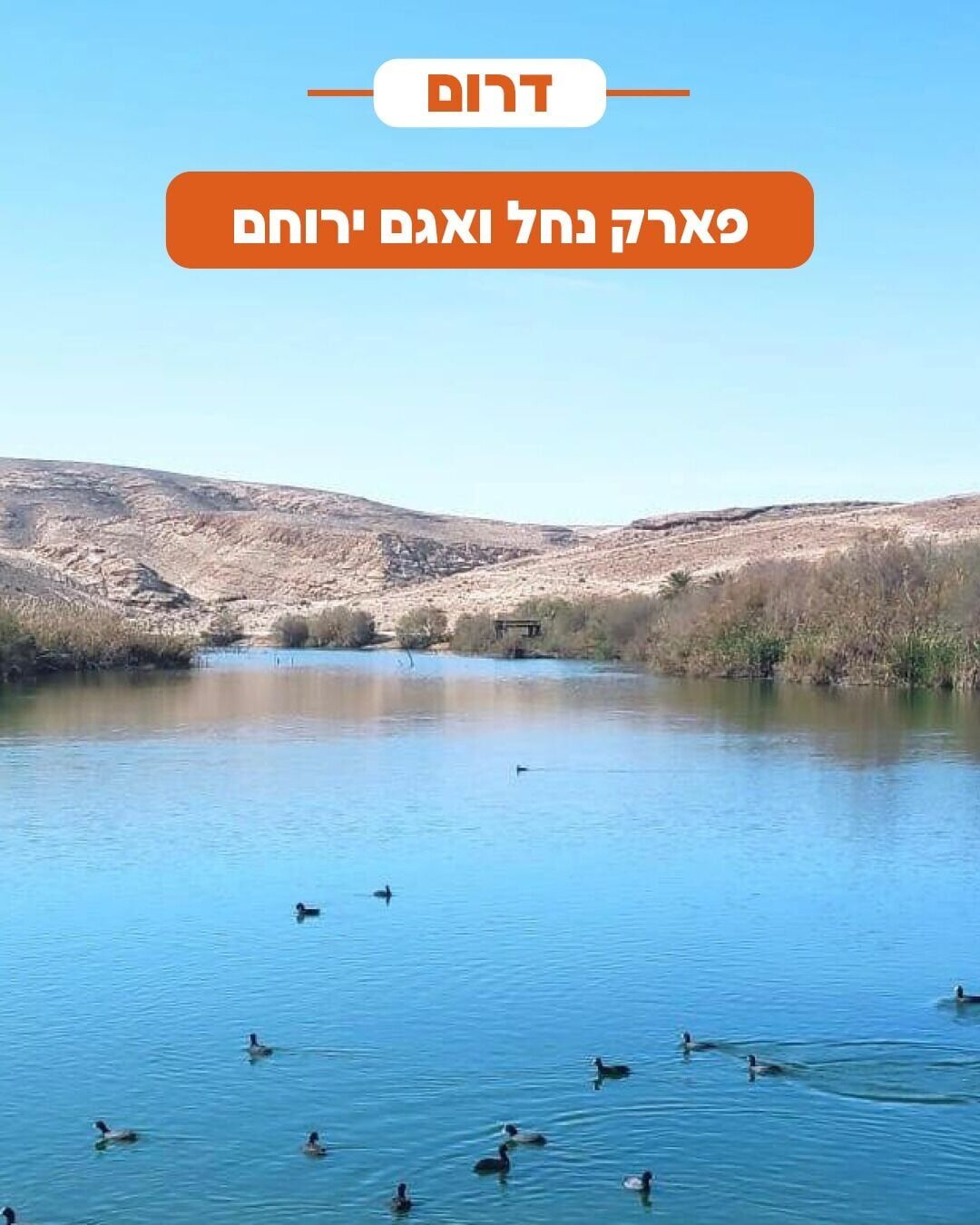 פארק נחל ואגם ירוחם: פארק מטופח סביב אגם ירוחם הכולל טיילת, גשר, נקודות תצפית ומסלולי אופניים. האתר מציע חוויית טבע נוחה עם פינות פיקניק מוסדרות לצד האגם.