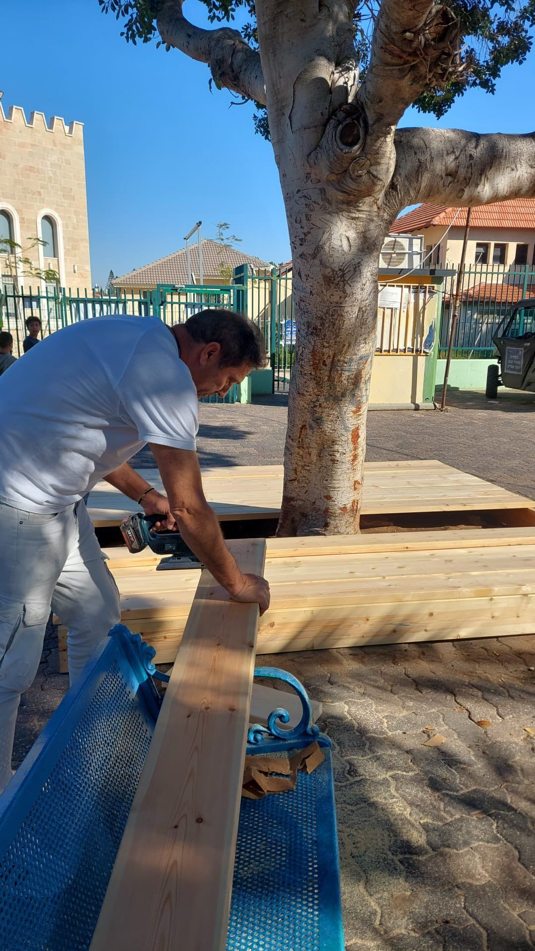 שדרוג חזותי בבית הספר רמות ויצמן ביבנה: הוקמה במה חדשה סביב העץ המרכזי בחצר בשיתוף העירייה