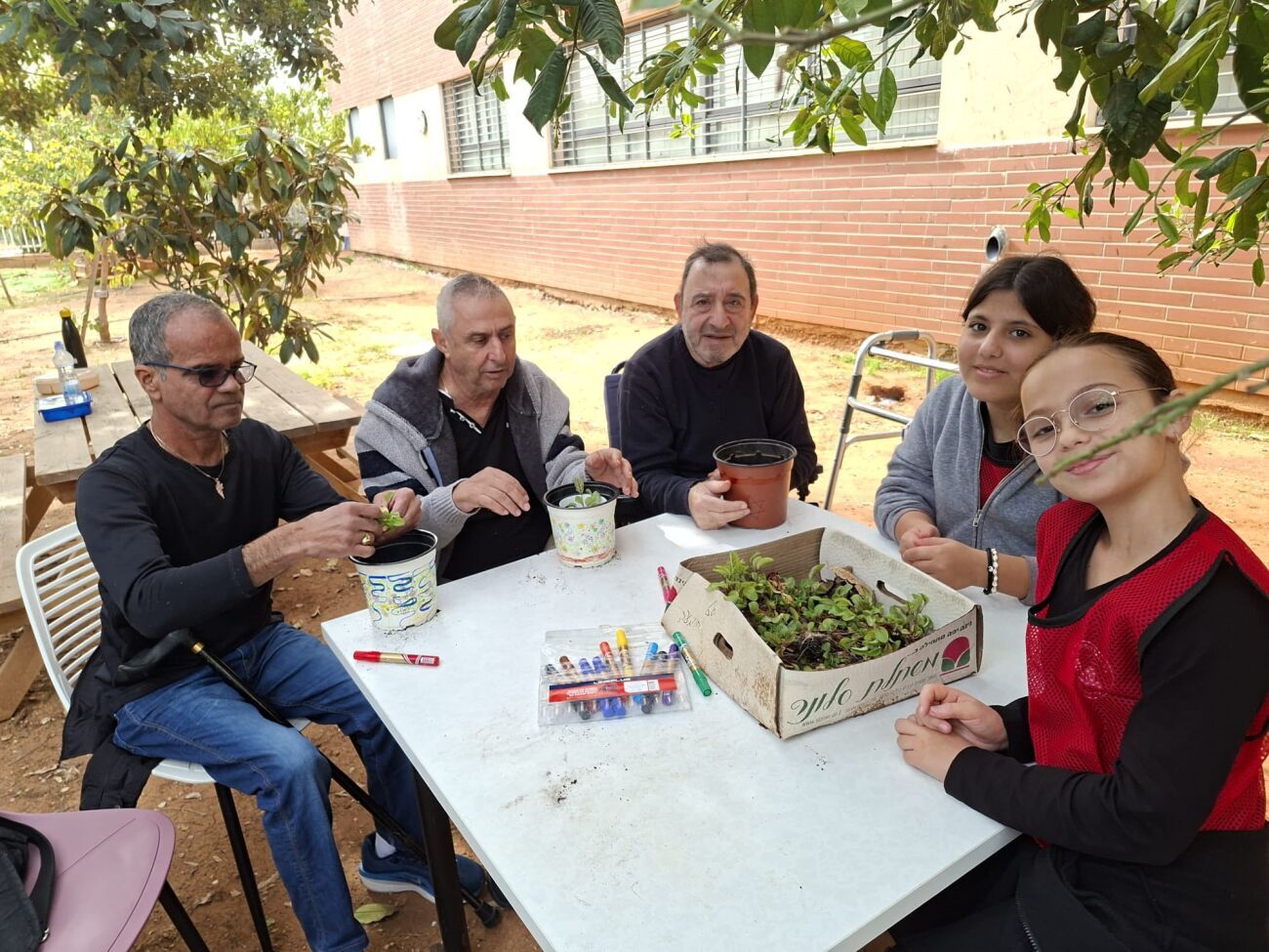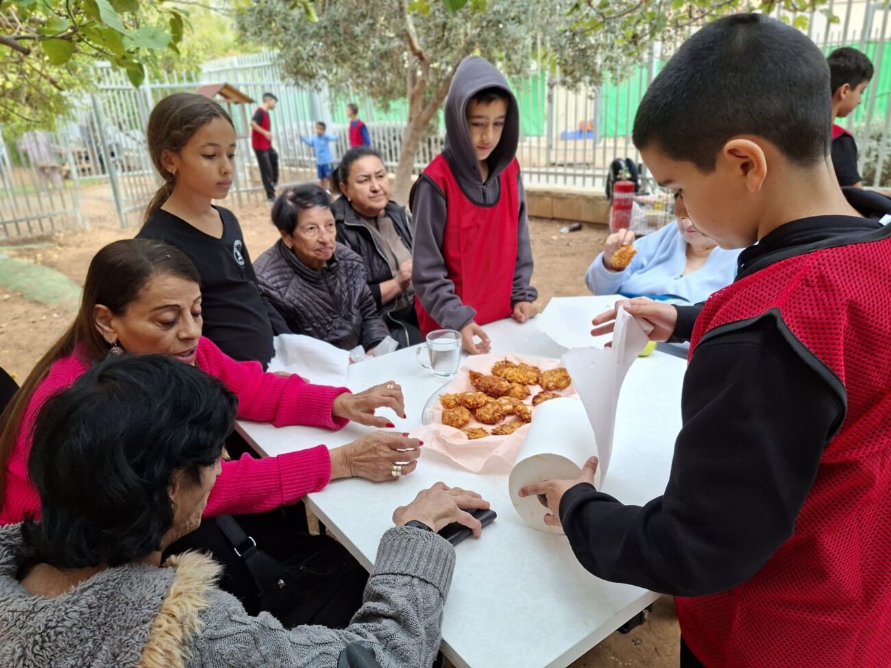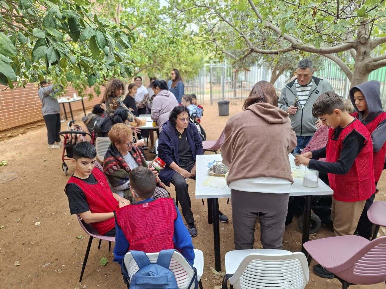 התלמידים קיבלו את האורחים, ליוו אותם לאורך כל הפעילות והנחו כל תחנה ברגישות, בסבלנות ובשותפות. המפגש נפתח בקבלת פנים שכללה תה ועוגיות בוקר ליצירת תחושת קהילה. בהמשך, יצאו התלמידים והאורחים לקטיף הדרים באמצעות מזמרת גבהים, כאשר התלמידים סייעו לאורחים בקטיף ובהכנת פומלות.