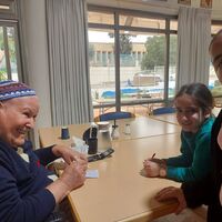 במסגרת המפגש המרגש, שיחקו התלמידים והמבוגרים יחד במשחק בינגו, צחקו ויצרו חיבור אנושי משמעותי. התלמידים גילו רגישות, סבלנות והקשבה רבה, בעוד בני הגיל השלישי העניקו להם בחזרה חיוכים, סיפורים וחום רב.