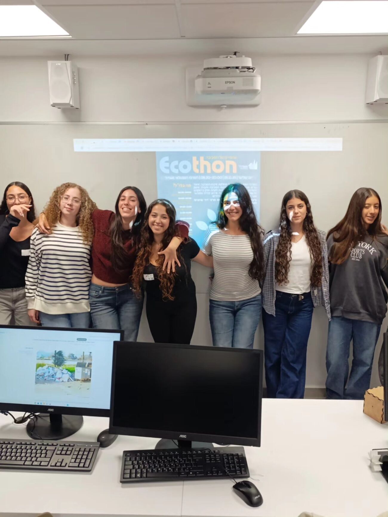 11 תלמידות כיתה י' ממגמת הנדסת מערכות בקריית החינוך יצחק נבון ביבנה, בהובלת התלמיד דביר חן מכיתה י"ב, השתתפו היום בהאקתון בנושא איכות הסביבה שהתקיים במרכז הטכנולוגי באשדוד.