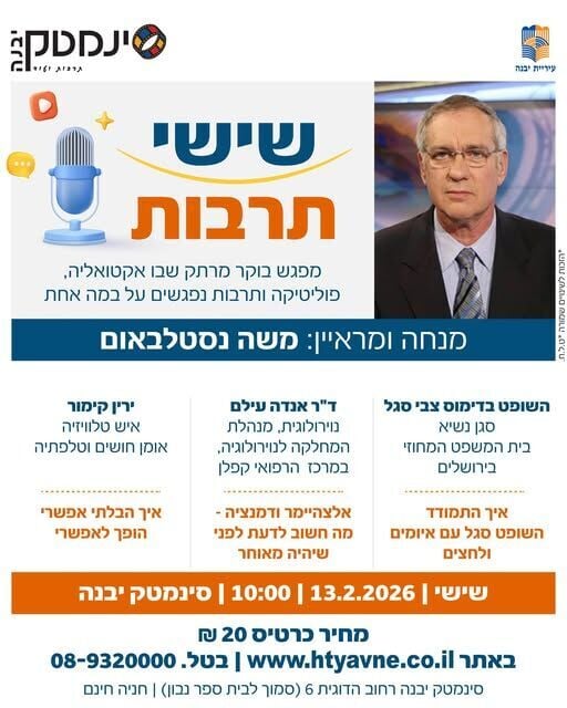 היכל התרבות יבנה הודיע על השקת יוזמה חדשה בסינמטק העירוני תחת הכותרת "שישי תרבות". במסגרת זו, ייערכו מפגשי בוקר בהנחייתו של משה נסטלבאום.