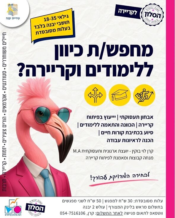עיריית יבנה מציעה: ייעוץ והכוונה מקצועית ללימודים וקריירה לצעירים תושבי העיר בגילאי 18-35 בעלות מסובסדת