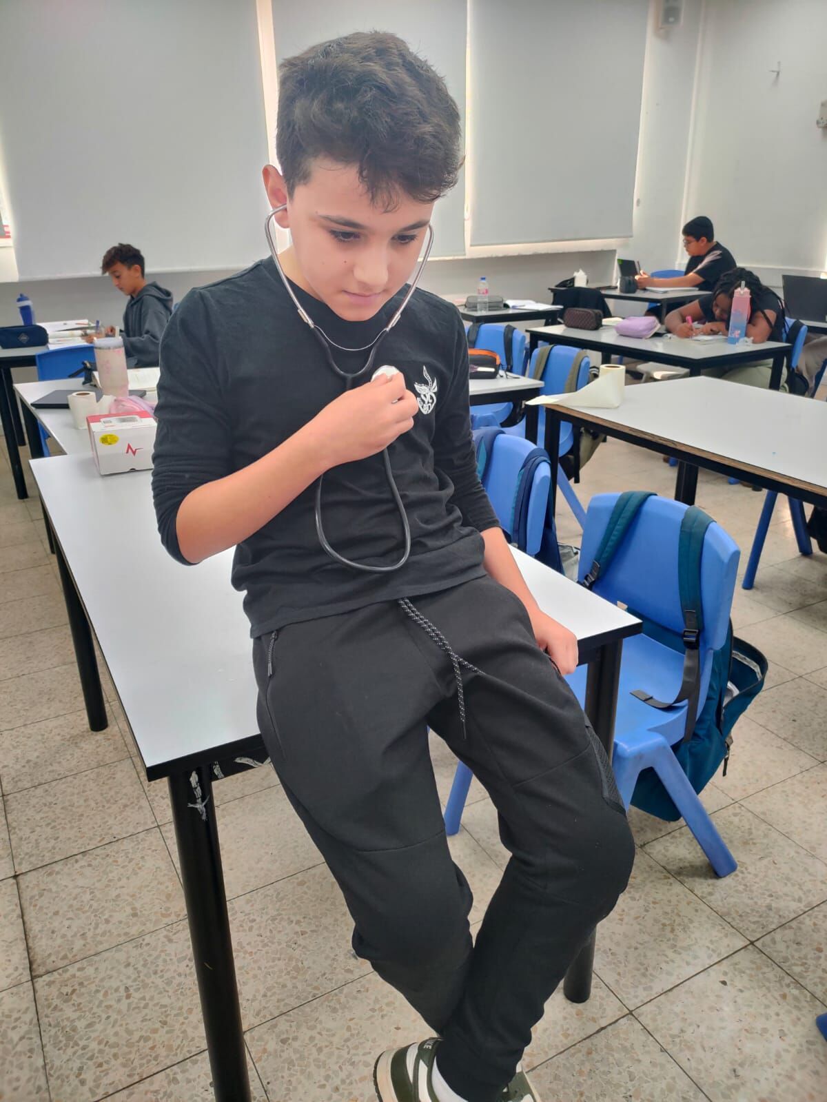 בשיעור האחרון, המורה שרית הביאה לכיתה סטטוסקופים, והתלמידים התנסו במציאת הדופק בצורה מקצועית. בנוסף, ערכו התלמידים מדידות לחץ דם באמצעות מכשיר תואם. ההתנסות המעשית אפשרה לתלמידים לחקור מקרוב את אופן פעולת הלב.