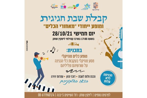 הופעה ייחודית של כלי נגינה מוזיקלי " מאחורי הכלים" יחד עם עמדות יצירה, הכנת חלות ודוכני מזון יחכו לילדים ולמשפחותיהם היום, 28.10 בשעה 17:00 בפארק של מרכז קהילתי ליפקין שחק.